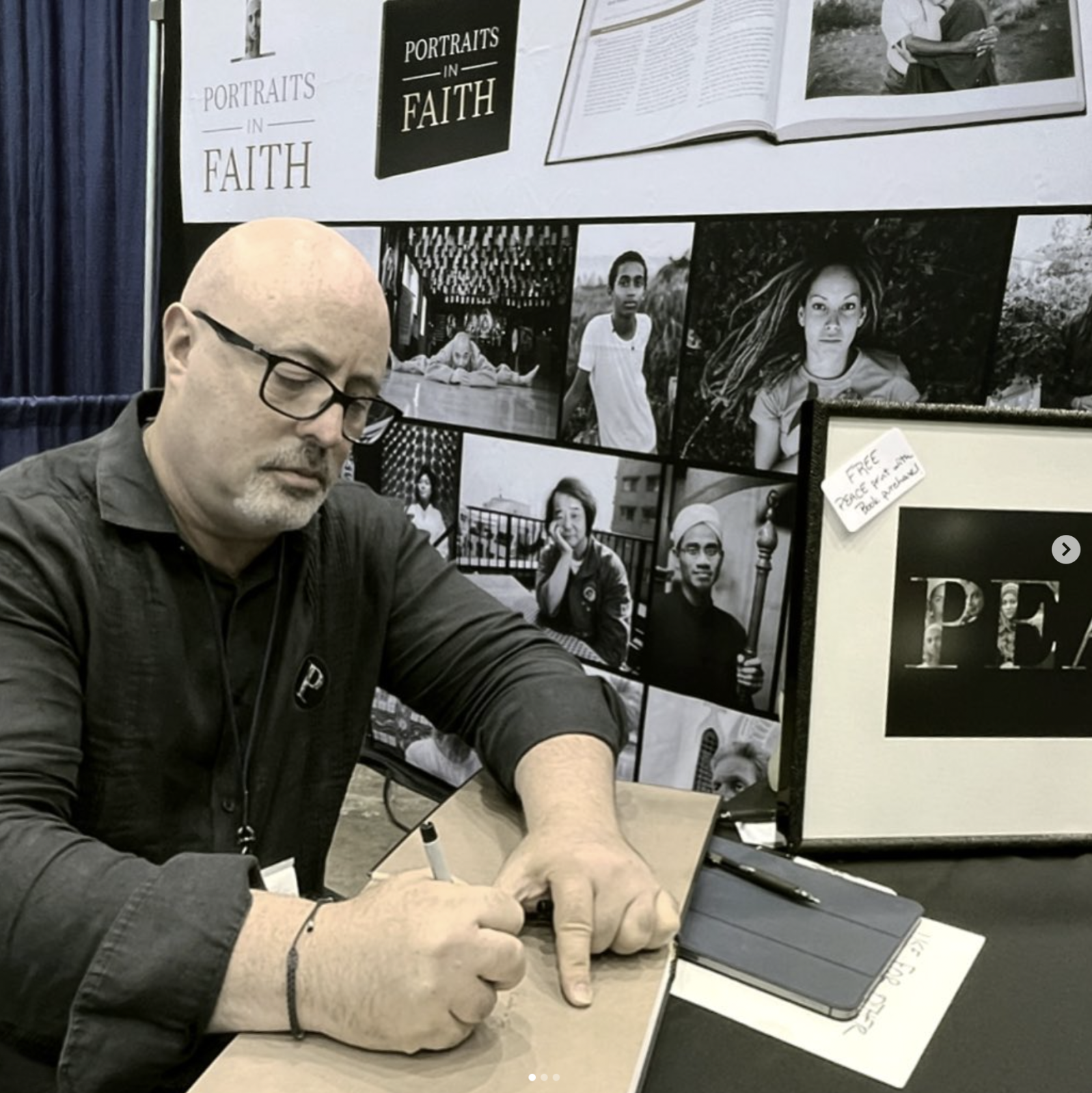 Portraits in Faith was excited to be part of its fourth Parliament of the World’s Religions recently in Chicago. This year, PIF partnered with the Charter for Compassion in creating a contemplative space at the parliament for heart, head, body, and soul. Each of these four spaces was a large 20 foot diameter yurt decorated on the outside by 60 foot banners of PIF portraits. It was a powerful visual example of what contemplation can bring to us as individuals. Our PIF booth, led by founder Daniel Epstein, in the exhibition hall enabled us to engage many organizations for potential partnerships and to sell over 30 books. Thank you to Petra Kovacs (graphic designer), Laura Friedman (producer/editor), Penny Scudder (business manager), and Gina Alicea (curator) for the amazing effort and teamwork to pull this together.